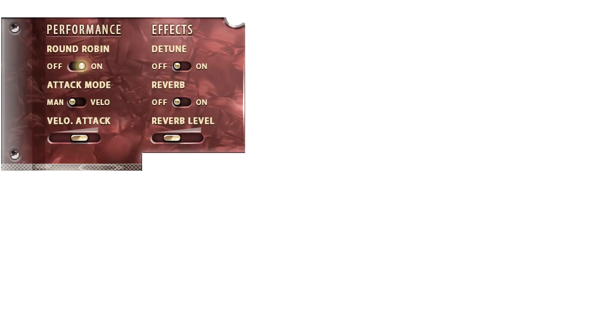 Detune, Key Noise, Bellow, Release control