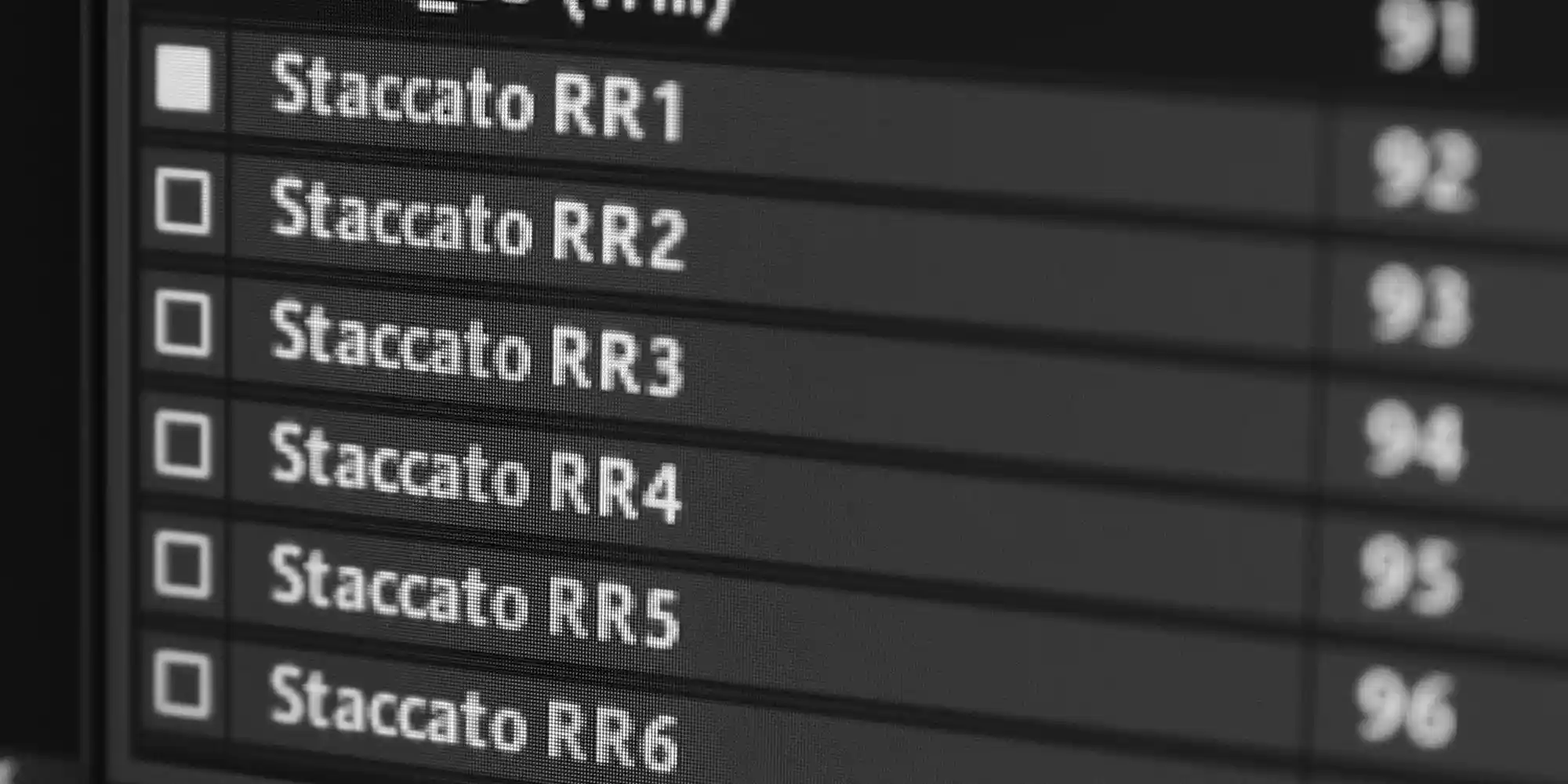 Short notes have body and variation, thanks to six round-robin layers. This makes fast figures and repeated notes sound fluid and alive — no machine-gun effect.