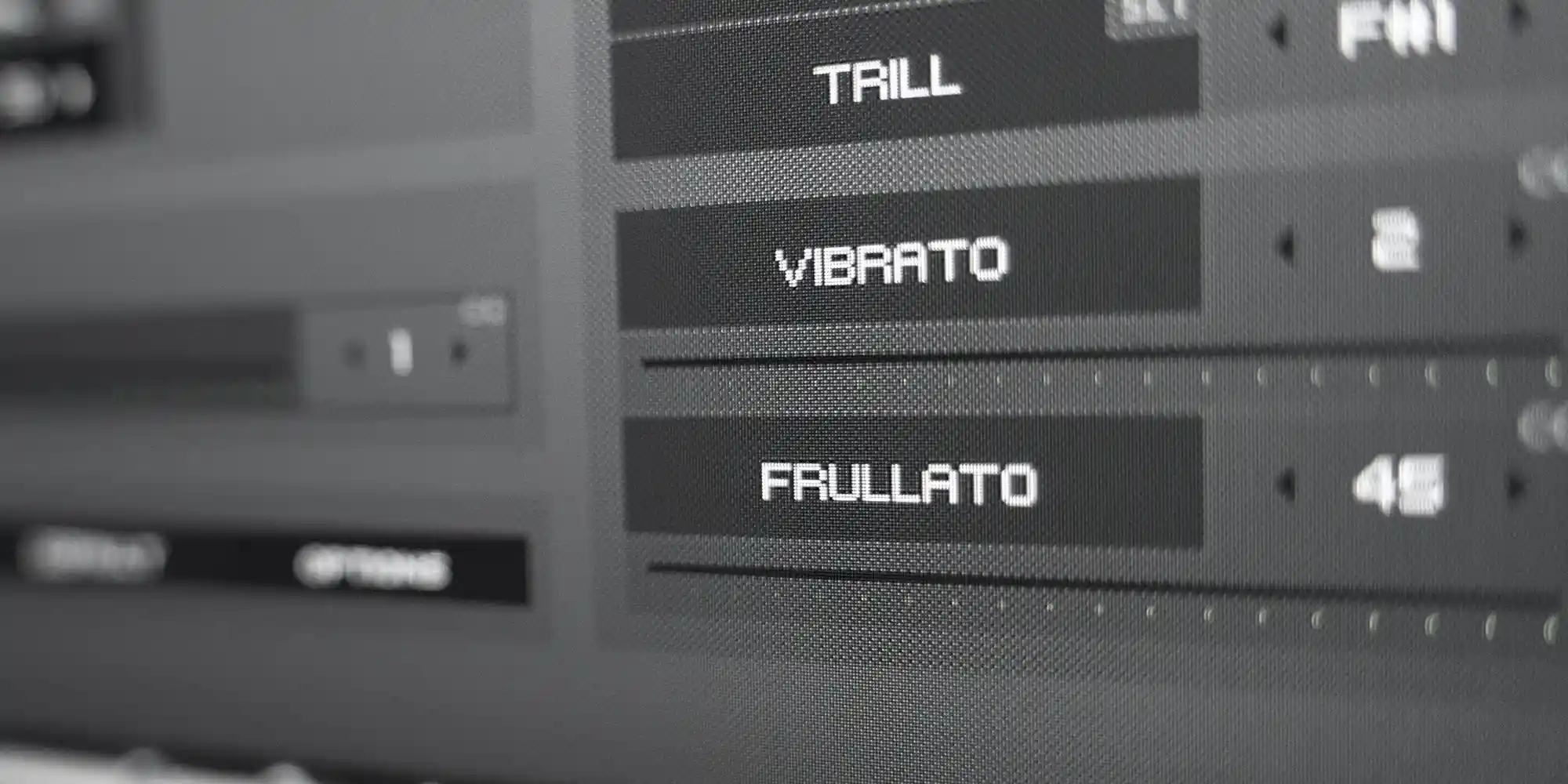 Two expressive techniques that let you shape the tone of long notes. Both vibrato and frullato feel integrated — adding motion without ever sounding layered or artificial.