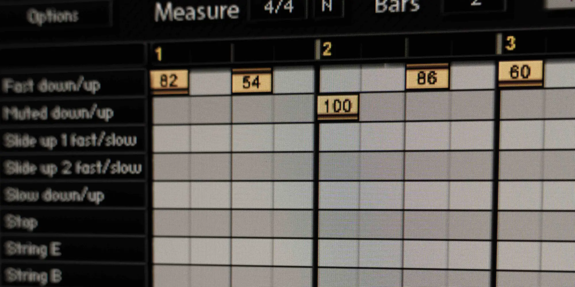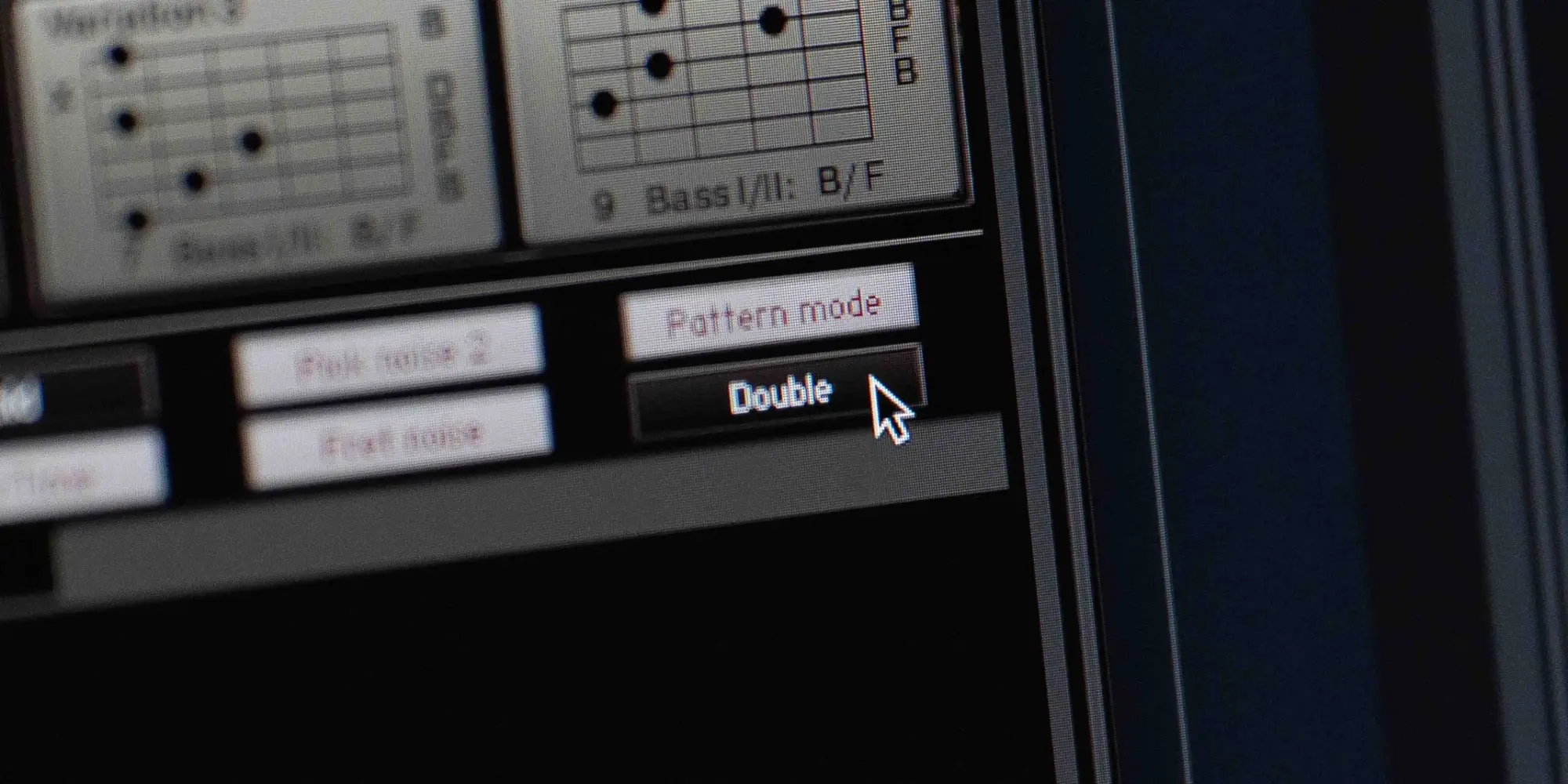 Ten strum articulations let you perform everything from soft upstrokes to fast, aggressive downstrokes. You can control the number of strings played, strum speed, muting, and slides. Combined with bass note and string triggering, this creates authentic fingerstyle or pick-style rhythms.