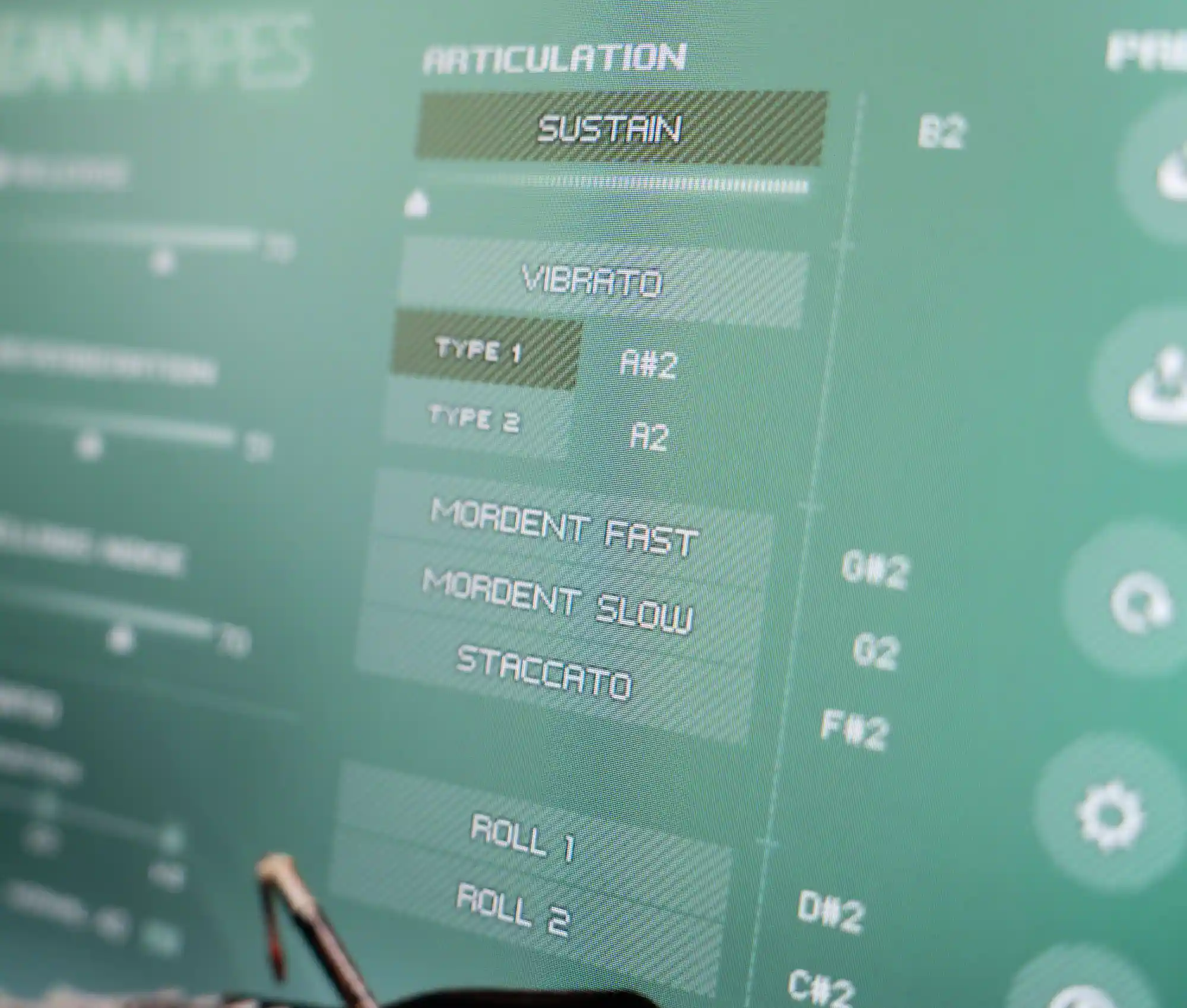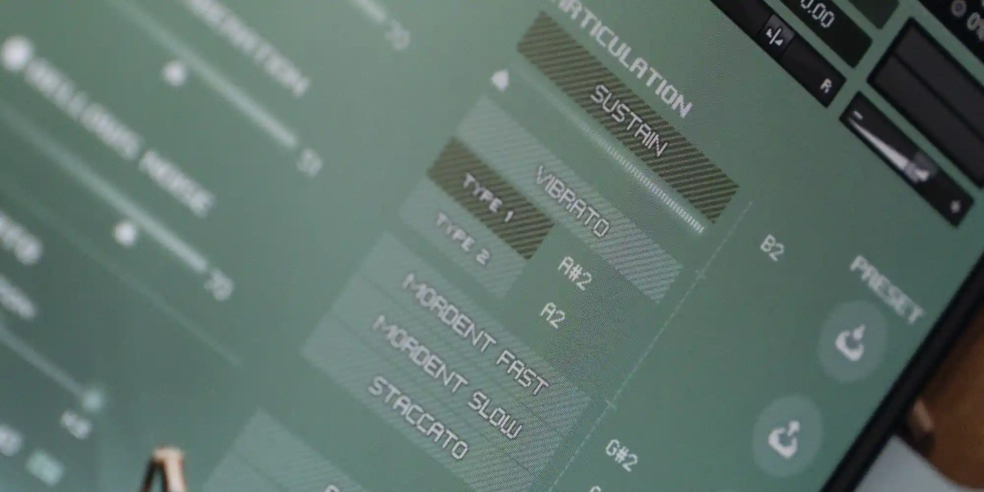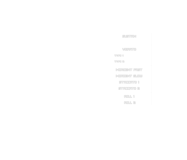 8 articulations + 2 vibrato types with speed and depth control