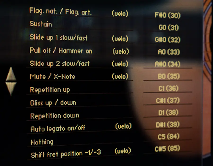 Dedicated keys repeat the last played note or chord with subtle variations in timing and attack. Ideal for fast strums, tremolos, or rhythmic pulses. Repetition behavior adapts to the recently used articulation . Strum speed and direction (up/down) are fully customizable.