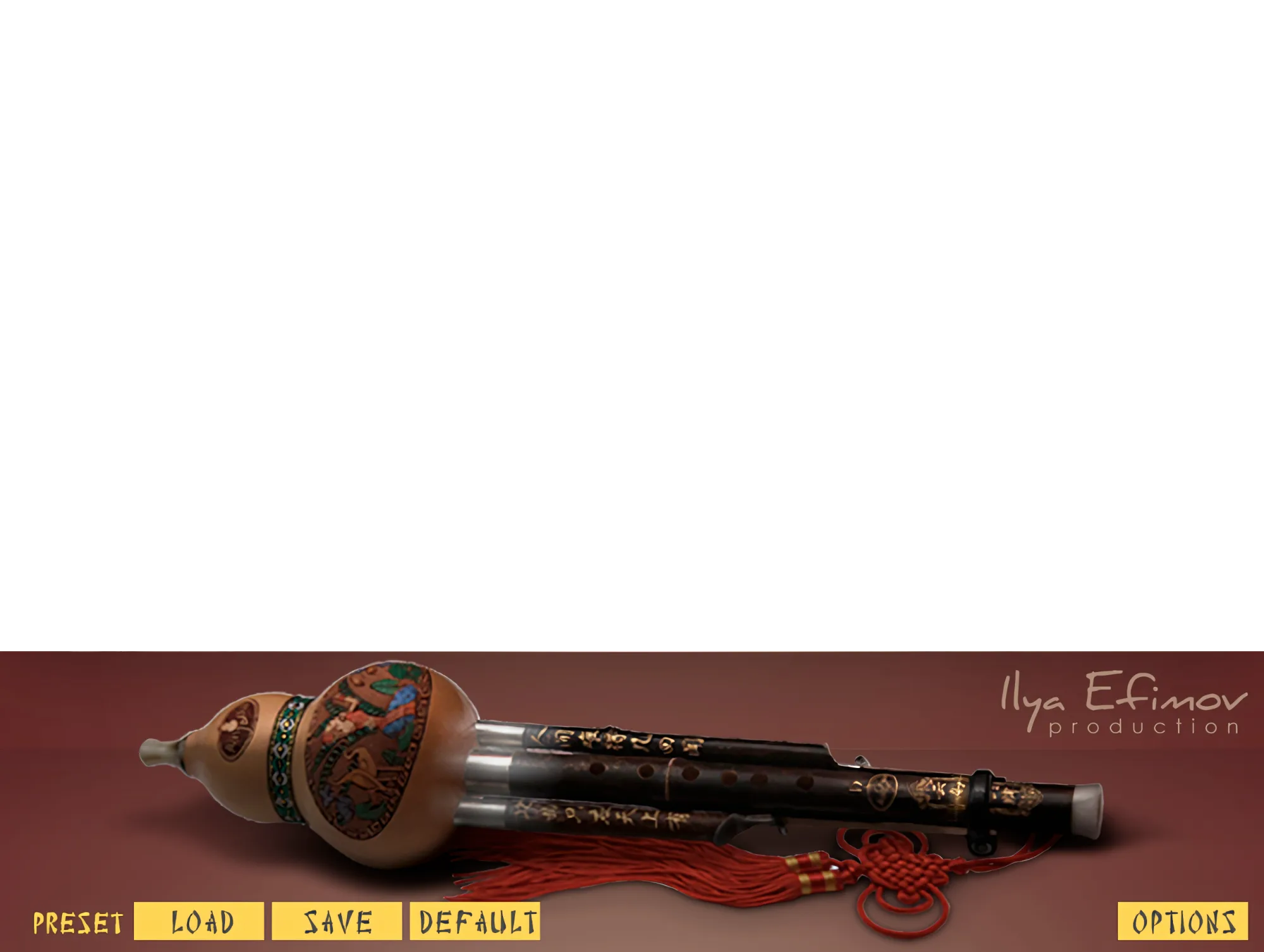 The Hulusi, a free reed wind instrument, creates enchanting melodies with its three bamboo pipes - main chanter and drones. Our library allows imitating virtually anything that a real hulusi can perform. Including slide-ups, grace-notes and natural vibrato.