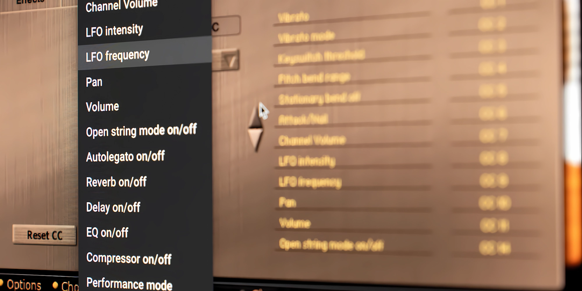 You can perform vibrato manually using aftertouch, modulation wheel, or dedicated keyswitches. There’s also an LFO-based vibrato mode for automated control, with parameters for speed, depth, and delay.